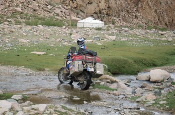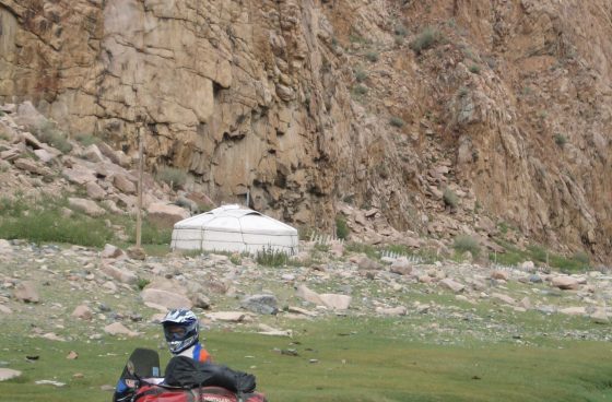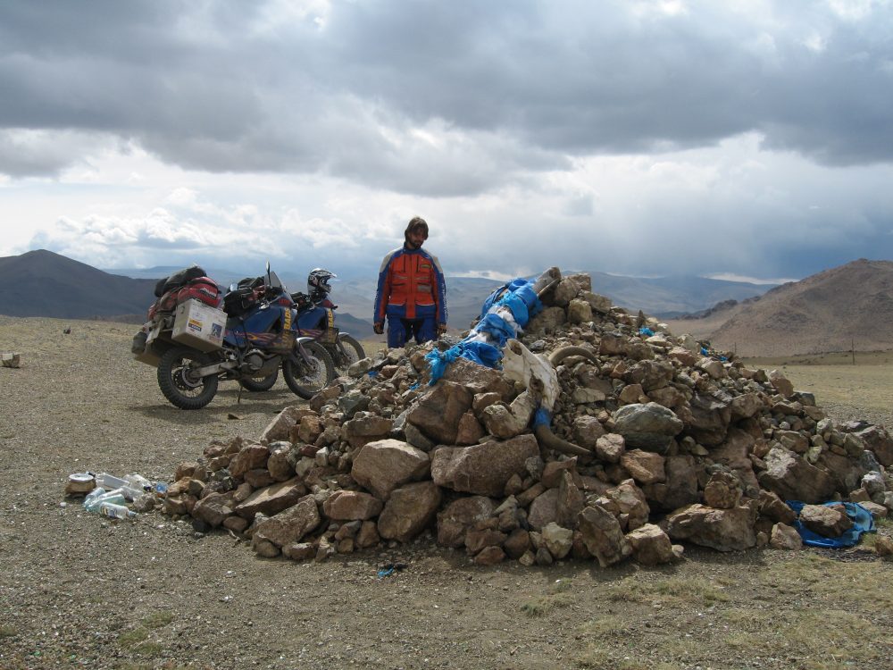В пути пока что приходится ориентироваться только по координатам, введённым в наши навигационные системы. Через 50 километров в посёлке Дуд (Duud) мы заправляемся бензином 80 марки. Приходится считаться с таким фактором – бензин лучше этого можно найти только в больших городах, к тому же горючее очень дорого, примерно доллар за литр. Насос тоже доисторический, ручной. О пещерах, которые вроде находятся в 25 километрах никто ничего не знает. Дорога нас ведёт через сказочно красивую долину, а около шести вечера, когда дороги делаются менее и менее проходимыми, судя по показателям GPS, мы оказываемся в восьми километрах от места, которое ищем. И тут дорога обрывается. Злость перемежается лёгкой паникой, и мы пытаемся забраться на гору по бездорожью. Подъём немаленький, около 30 градусов, везде разбросаны громадные камни, но хотя бы основание твёрдое. На самом закате мы добираемся до вершины и становится ясно, что дальше ехать бессмысленно – вниз идёт ещё один крутой подъём, а что там дальше – неизвестно. Мы аккуратно съезжаем примерно на километр ниже и там уже в темноте, борясь с сильнейшим ветром, разбиваем палатку. Из засохших лепёшек скота удаётся разжечь и костёр.