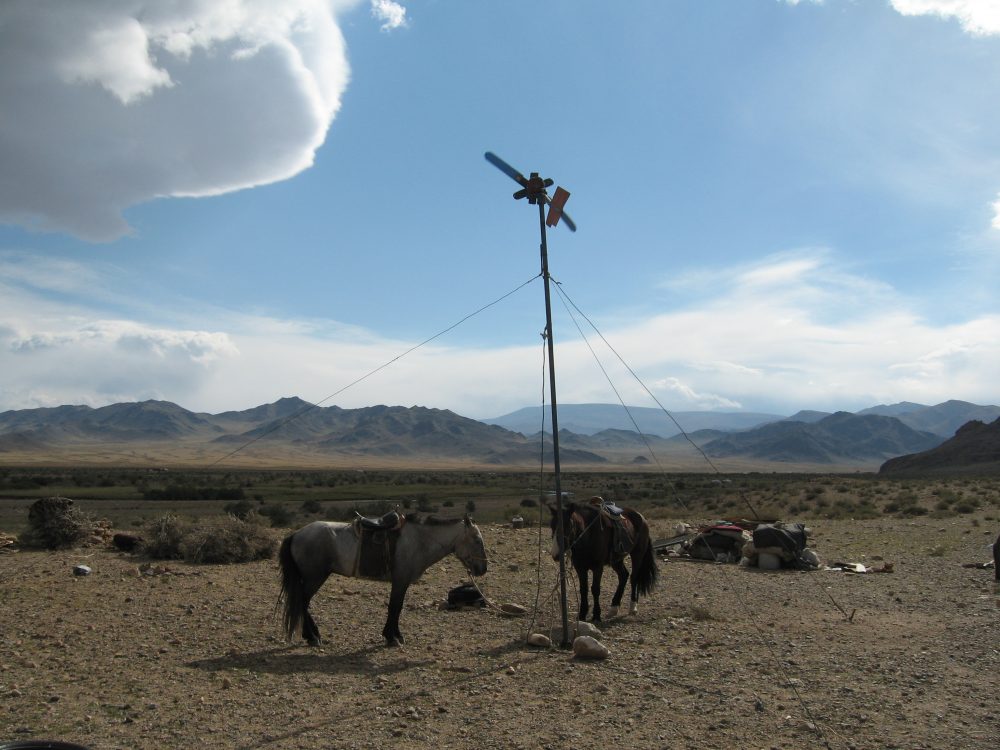 Может лодка нужна? По карте ориентироваться на местных дорогах трудно, да и местные не всегда могут подсказать. Каменистая степь разъезжена во всех направлениях, ничто не говорит о том, что здесь пролегает главная магистраль страны, соединяющая запад с востоком, как это обманчиво указано на карте. Транспорта на дорогах совсем мало, в основном российская техника – уазики, камазы и ижи. Если кто надеется проехать по Монголии на легковушке, ему следовало бы знать, что это нереально. Ходят слухи, что через несколько лет начнётся строительство дороги, но пока ничто об этом не свидетельствует. Часто дорога проходит через горные перевалы на высоте 2000-2500 метров. Температура иногда падает до нуля и даже здесь за нами ползут дождевые облака. Местами приходится пересекать горные речки без мостов, что, впрочем, трудностей не составляет, так как в самых глубоких местах уровень не превышает тридцати сантиметров. В долинах, в которых кое-где удалось прорасти траве, виднеются юрты, что по-монгольски называются «гер» и пасущиеся стада, которые лишают траву малейшего шанса на жизнь. Когда мы проезжаем мимо юрт, местные высыпают на улицу и с интересом смотрят, кое-где машут руками и здороваются. Остановившись у одной из них, нас сразу приглашают на чай.