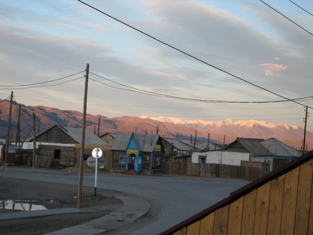 Мы выехали обратно на Чуйский тракт – асфальт великолепный и вид вокруг дороги тоже. Единственное, что мешает наслаждаться – это надоедливые «индейцы», которые откуда ни возьмись появляются всякий раз, когда мы останавливаемся. Если до Алтая ещё была мысль поездить по посёлкам и понаблюдать за местной жизнью и традициями, то теперь ясно, что в этом нет смысла – большая часть населения абсолютно деградировала, а жаль. В посёлке Кош-Агач ситуация немного лучше, так как большинство населения составляют казахи. Снова появляются улыбки на лицах. Посёлок с мечетью в центре и со странными постройками без крыш в обрамлении заснеженных гор кажется очень уютным. Мы быстро находим место, где переночевать – по 150 рублей (4,5 $) с носа.