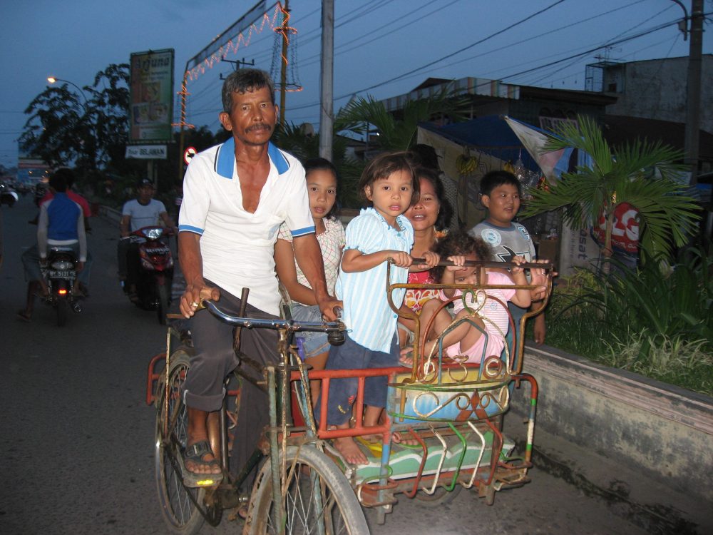 На моторной лодке. В отличие от движения транспортных судов между Пенангом и Суматрой, движение пассажирских плавучих средств устроено нормально: большие моторки отходят четыре раза в неделю и нет никаких задержек.